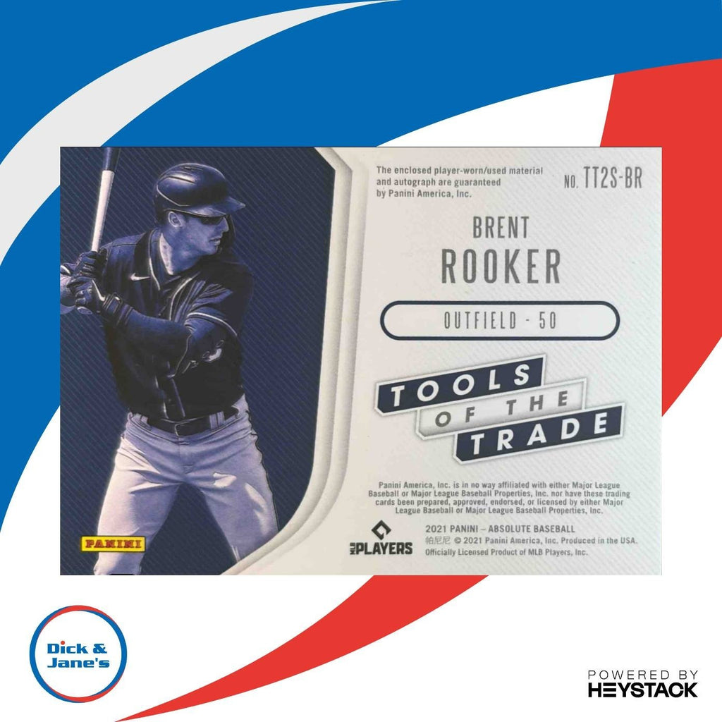 Collector's dream! The 2021 Panini Absolute Brent Rooker Tools of Trade Auto Dual Patch /99 RC Twins card is a gem for any MLB memorabilia enthusiast. Featuring a rookie autograph and dual patches, this rare card is a must-have for fans of the Minnesota Twins. Limited to only 99 copies, add this unique piece to your collection today! #MLB #TradingCard #RookieAutograph #MinnesotaTwins Listed With Mascot.