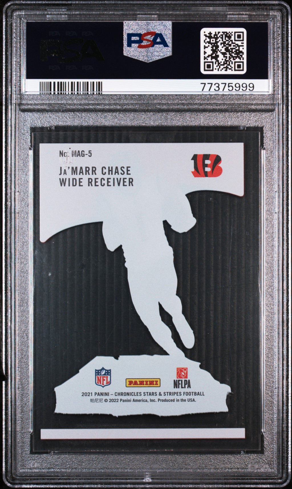 You are purchasing the following: 2021 Panini Chronicles Magnitude Ja’Marr Chase #MAG-5 PSA 8 . You will receive the exact item in the photographs. Note: Please do not connact us and asking the following: 1. What is the lowest you would take? Just make an offer. If the offer is automatically declined, you have your answer. 2. What the best you can do? See above. Not repling to an email is a reply. 3. Any room on this? See above. Not repling to an offer is a reply. 4. We ONLY do one counter offer, so please make your best offer the first time! Note: If the price off, in your option, please send your resaoning and an offer. We will review it. Note: We manage nearly 10 millon cards regularly and will adjust prices as errors are noticed or pointed out! Listed With Mascot.