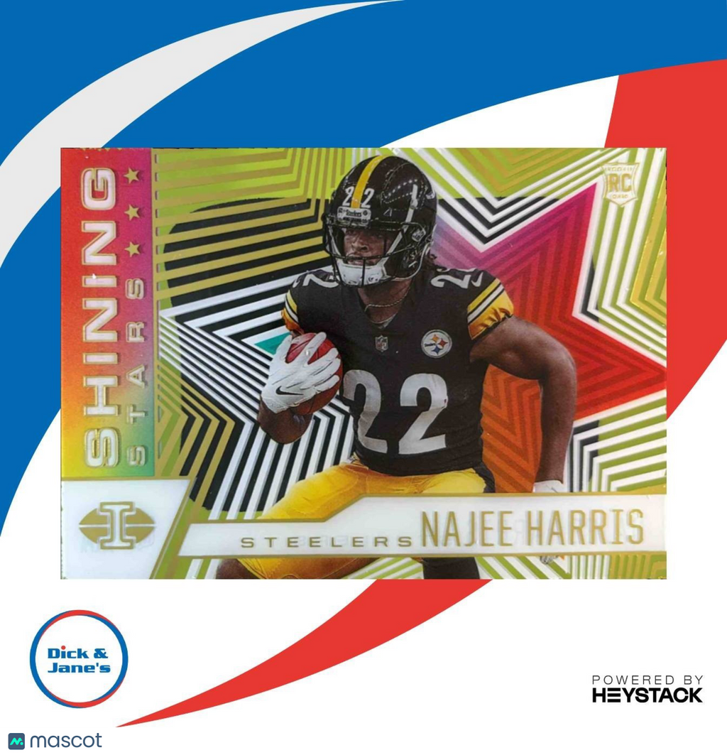 Get your hands on the highly sought-after 2021 Panini Illusions Najee Harris Shining Stars #SS-19 RC trading card! This rookie card features the dynamic Pittsburgh Steelers running back and is a must-have for any football card collector. Don't miss out on adding this rare and valuable card to your collection today! Listed With Mascot.