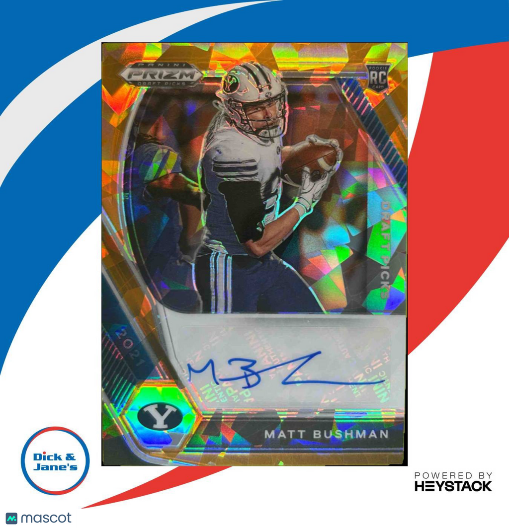 2021 Panini Prizm Draft Picks Collegiate Matt Bushman Auto Orange Ice #DPA-MAT Listed With Mascot.