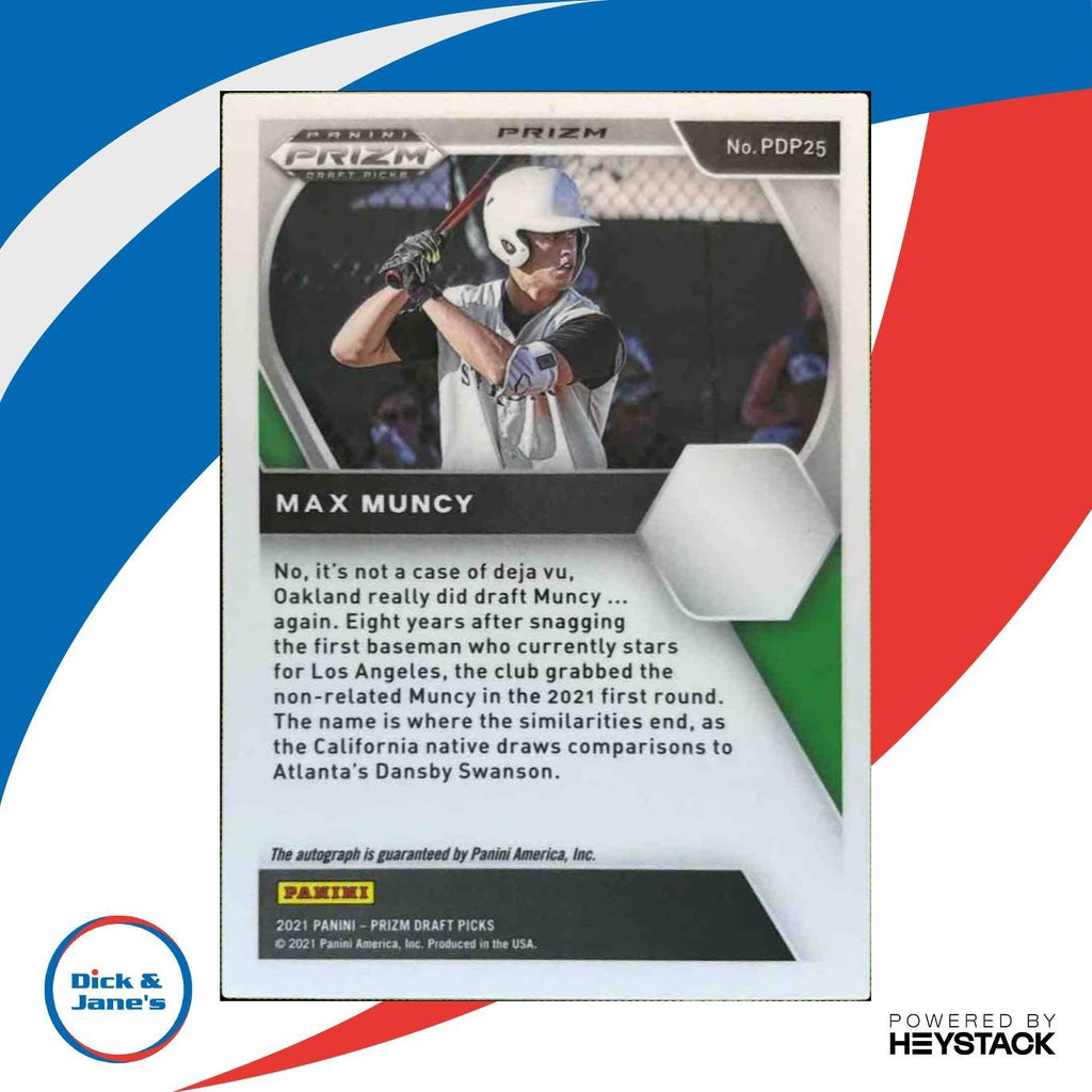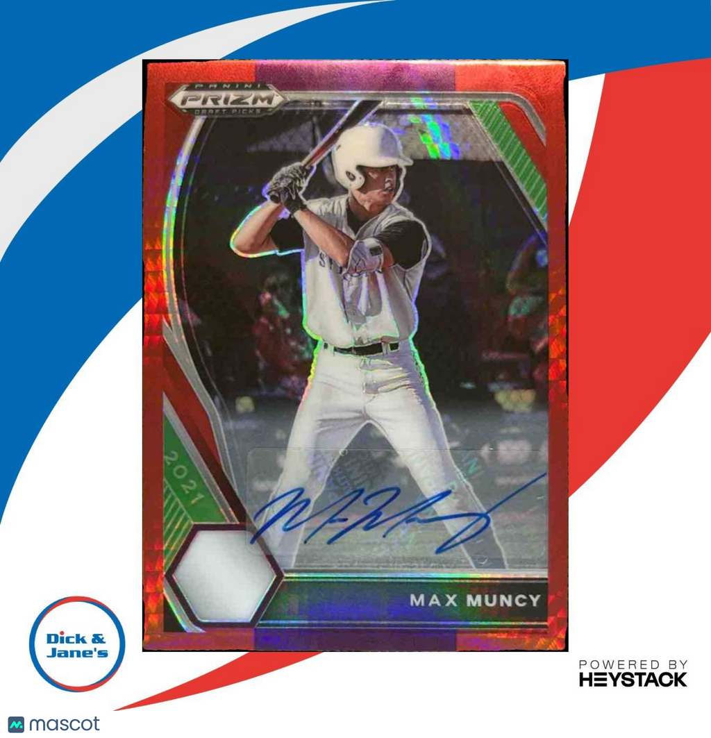 This 2021 Panini Prizm Draft Picks Max Muncy Auto Red #PDP25 card is a must-have for any sports card collector! Featuring an authentic autograph from Max Muncy himself, this rare and highly collectible card is a valuable addition to any trading card collection. Don't miss out on owning this special piece of sports memorabilia! Listed With Mascot.