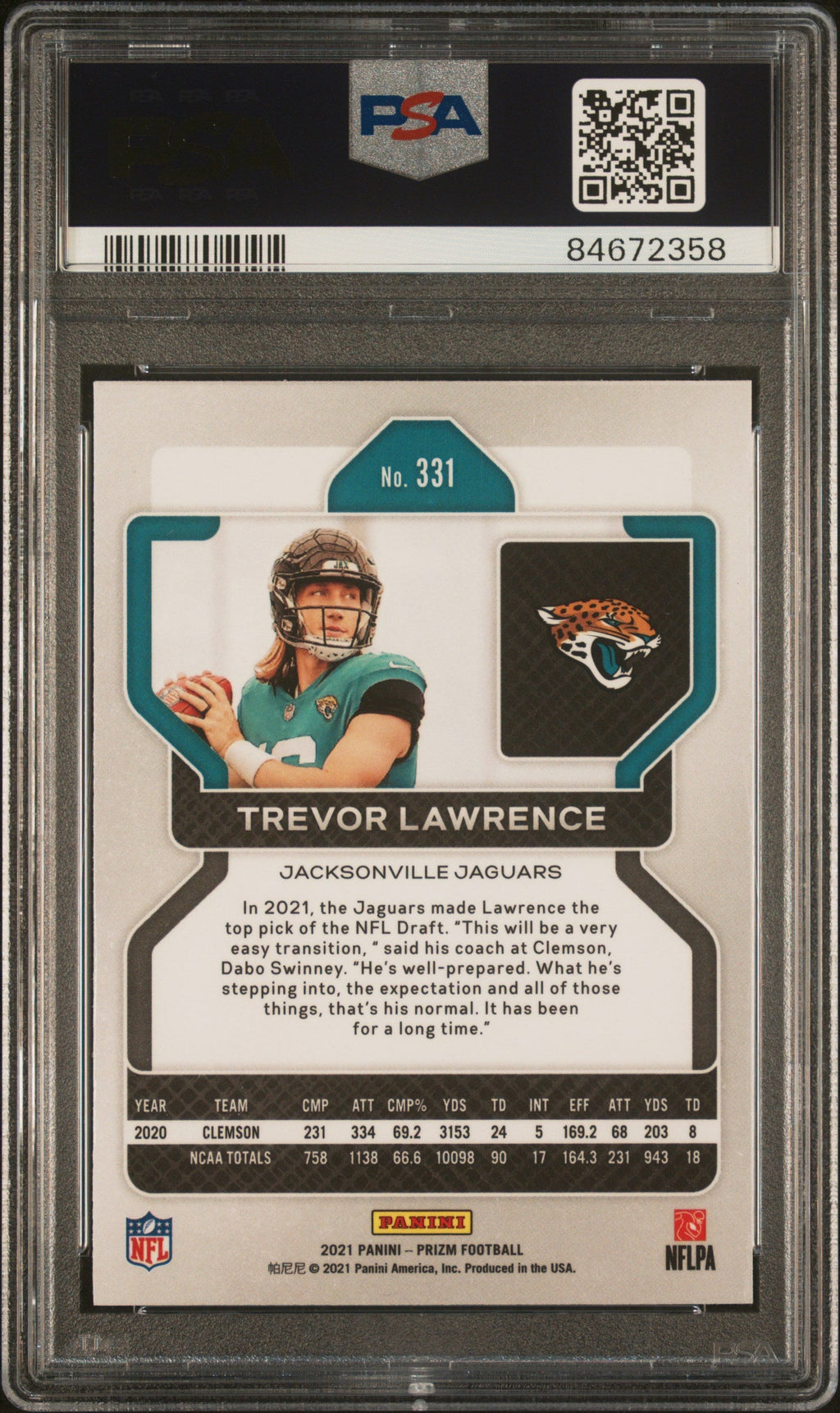 You are purchasing the following: 2021 Panini Prizm Trevor Lawrence #331 PSA 9 . You will receive the exact item in the photographs. Note: Please do not connact us and asking the following: 1. What is the lowest you would take? Just make an offer. If the offer is automatically declined, you have your answer. 2. What the best you can do? See above. Not repling to an email is a reply. 3. Any room on this? See above. Not repling to an offer is a reply. 4. We ONLY do one counter offer, so please make your best offer the first time! Note: If the price off, in your option, please send your resaoning and an offer. We will review it. Note: We manage nearly 10 millon cards regularly and will adjust prices as errors are noticed or pointed out! Listed With Mascot.