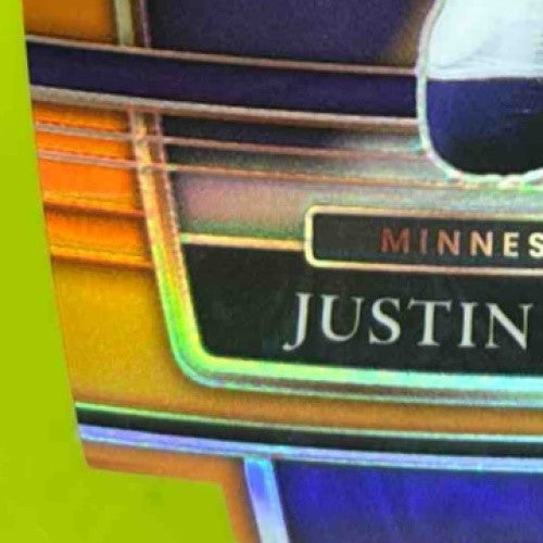 Get your hands on this rare 2021 Panini Select Justin Jefferson Orange Prizm Die Cut card! With a limited edition run of only 249, this NFL card featuring the Minnesota Vikings wide receiver is highly collectible. Don't miss out on adding this Concourse level card to your collection. Listed With Mascot.