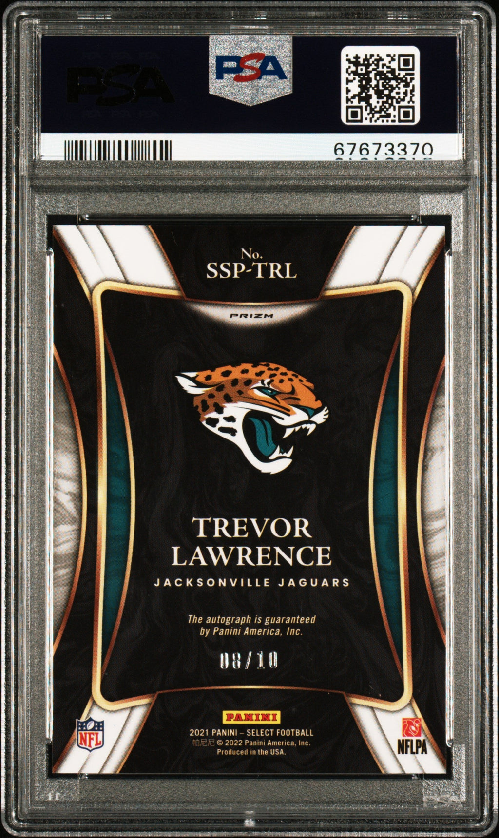 You are purchasing the following: 2021 Panini Select Select Signatures Prizm Trevor Lawrence SIG. Prizm Gold #SSPTRL PSA 10 . You will receive the exact item in the photographs. Note: Please do not connact us and asking the following: 1. What is the lowest you would take? Just make an offer. If the offer is automatically declined, you have your answer. 2. What the best you can do? See above. Not repling to an email is a reply. 3. Any room on this? See above. Not repling to an offer is a reply. 4. We ONLY do one counter offer, so please make your best offer the first time! Note: If the price off, in your option, please send your resaoning and an offer. We will review it. Note: We manage nearly 10 millon cards regularly and will adjust prices as errors are noticed or pointed out! Listed With Mascot.