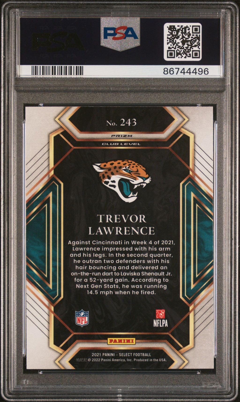 You are purchasing the following: 2021 Panini Select Trevor Lawrence Silver Prizm Rookie #243 PSA 10 Jacksonville Jaguars. You will receive the exact item in the photographs. Note: Please do not connact us and asking the following: 1. What is the lowest you would take? Just make an offer. If the offer is automatically declined, you have your answer. 2. What the best you can do? See above. Not repling to an email is a reply. 3. Any room on this? See above. Not repling to an offer is a reply. 4. We ONLY do one counter offer, so please make your best offer the first time! Note: If the price off, in your option, please send your resaoning and an offer. We will review it. Note: We manage nearly 10 millon cards regularly and will adjust prices as errors are noticed or pointed out! Listed With Mascot.