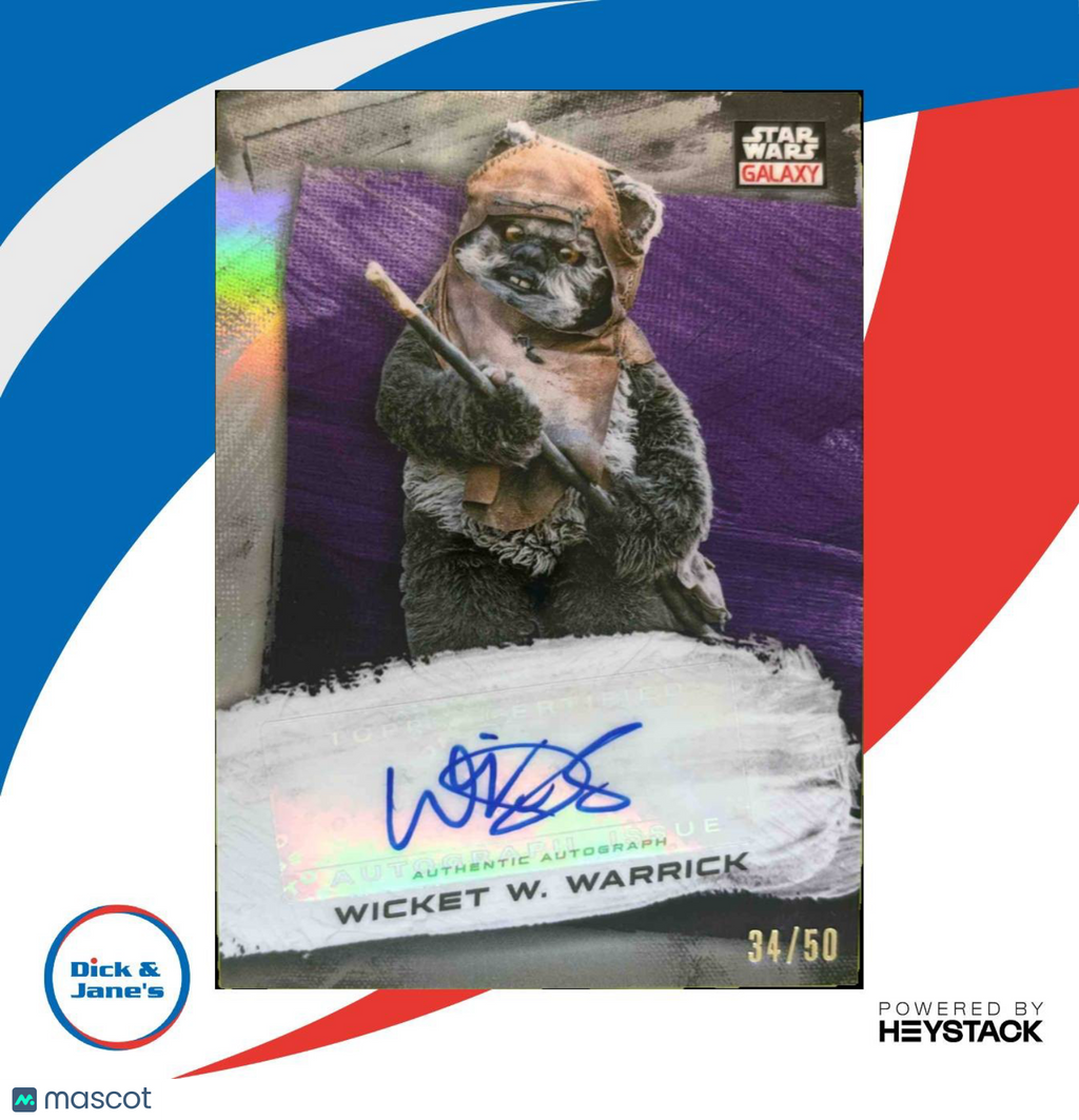 2021 Topps Chrome Star Wars Galaxy Warwick Davis Auto Purple Refractor 34/50 Listed With Mascot.