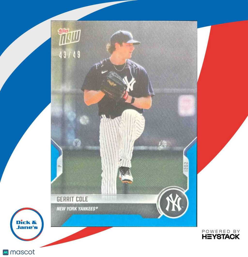2021 Topps Now Road to Opening Day New York Yankees Gerrit Cole Blue /49 #OD-40 Listed With Mascot.