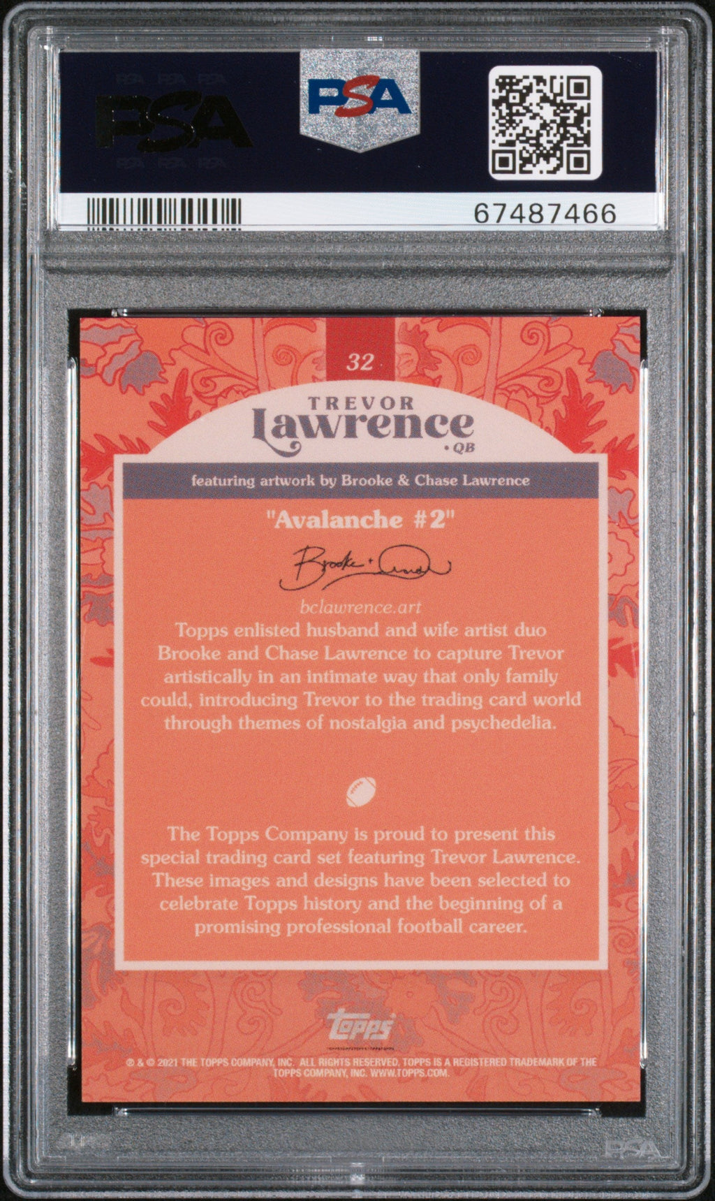 You are purchasing the following: 2021 Topps X Trevor Lawrence Trevor Lawrence Blue Rookie 098/199 #32 PSA 10 Jacksonville Jaguars. You will receive the exact item in the photographs. Note: Please do not connact us and asking the following: 1. What is the lowest you would take? Just make an offer. If the offer is automatically declined, you have your answer. 2. What the best you can do? See above. Not repling to an email is a reply. 3. Any room on this? See above. Not repling to an offer is a reply. 4. We ONLY do one counter offer, so please make your best offer the first time! Note: If the price off, in your option, please send your resaoning and an offer. We will review it. Note: We manage nearly 10 millon cards regularly and will adjust prices as errors are noticed or pointed out! Listed With Mascot.