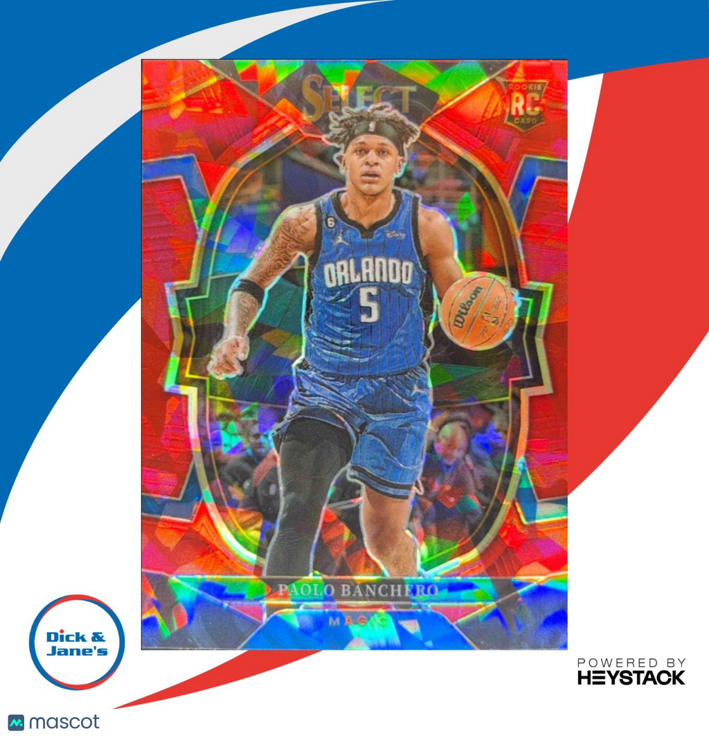 Powered by Frooition Home About Us Contact Other Baseball Baseball Rookies Baseball Inserts Baseball Game Used/Relics Baseball Autographed Football Football Rookies Football Inserts Football Game Used/Relics Football Autographed Basketball Basketball Rookies Basketball Inserts Basketball Game Used/Relics Basketball Autographed Hockey NASCAR Hard Cover Books Music CDs Baseball Boxes Baseball Pack Lots Football Boxes Football Pack Lots Other Boxes Othe Pack Lots Magic Singles 2022-23 Panini Select Paolo Banchero Red Cracked Ice Prizms #72 RC Orlando Magic 2022-23 Panini Select Paolo Banchero Red Cracked Ice Prizms #72 RC Orlando Magic Item Description Add this rare 2022-23 Panini Select Paolo Banchero Red Cracked Ice Prizms #72 RC to your NBA trading card collection! This RC Concourse card features the rising star from the Orlando Magic in stunning red cracked ice design. Don't miss out on this unique and valuable addition to your sports trading card collection. About Us About Us PSA Grading Consignments Buying Cards EBay Live About Us Yes, there was a Dick & Jane! Originally founded in 1989, Dick & Jane's is Jacksonville's oldest hobby and collectibles store. Our focus is on the collector. We started small with comics, coins and cards and evolved based upon our customers needs and desired and now have 14 employees and over 5 million sportscards and nearly 700,000 different items on our dedicated singles sportscard website We have thousands of raw TCG cards in store. Magic the Gathering and Pokemon! We have Jacksonville s largest selection of graded sports and non-sports cards, all accessible on our website! We engage with our customers! Let us know what you would like to see in the store or changes you would suggest that we make. We would like to start hosting MONTHLY TRADE NIGHTS! We always are buying and trading! WE ARE THE LOCAL HOBBY STORE!!! Stop by if you are in the Jacksonville Area! We are right off I-95 near downtown. PSA Grading PSA Grading We