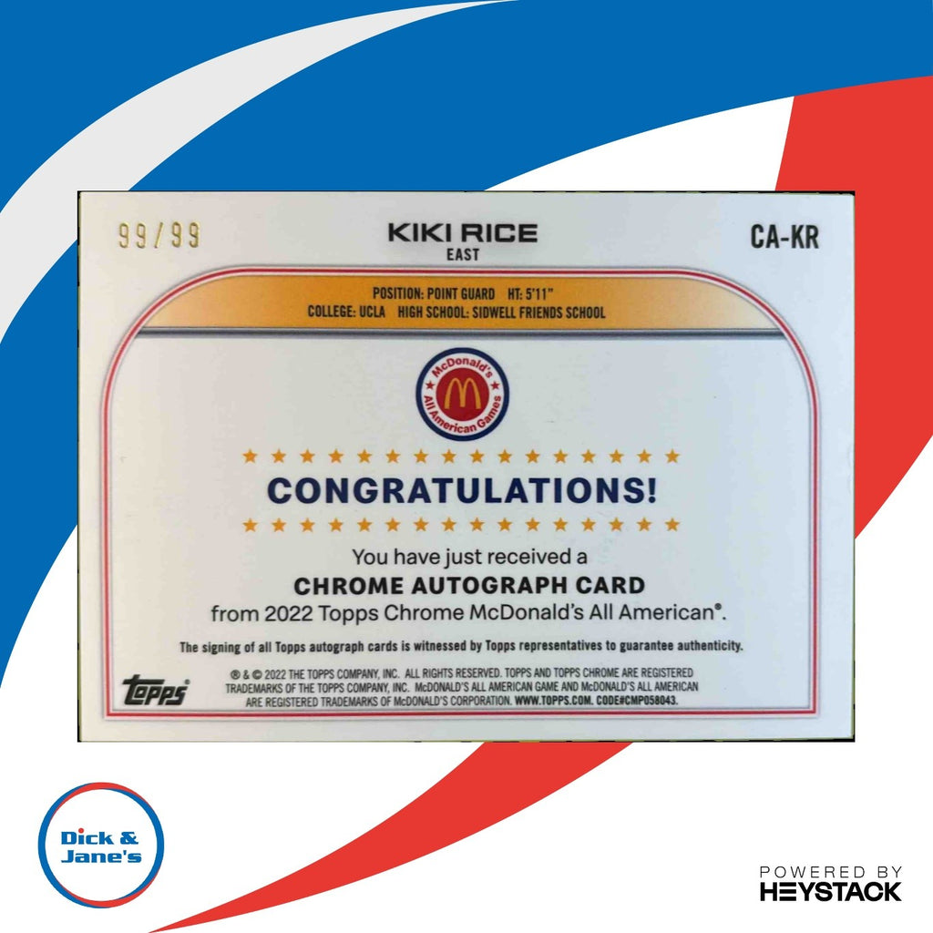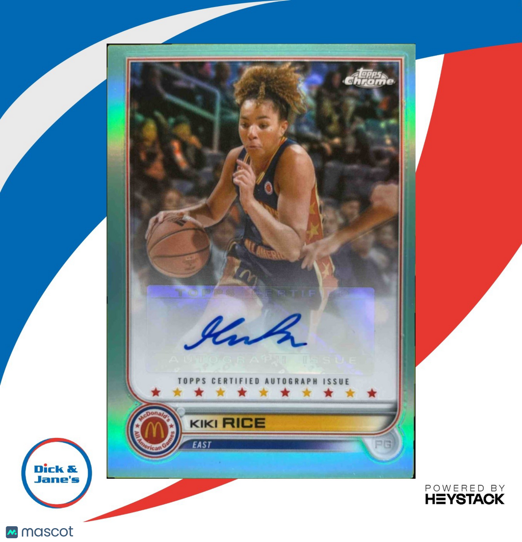 Powered by Frooition Home About Us Contact Other Baseball Baseball Rookies Baseball Inserts Baseball Game Used/Relics Baseball Autographed Football Football Rookies Football Inserts Football Game Used/Relics Football Autographed Basketball Basketball Rookies Basketball Inserts Basketball Game Used/Relics Basketball Autographed Hockey NASCAR Hard Cover Books Music CDs Baseball Boxes Baseball Pack Lots Football Boxes Football Pack Lots Other Boxes Othe Pack Lots Magic Singles 2022-23 Topps Chrome McDonald's All American Kiki Rice Auto Aqua Refractor /99 2022-23 Topps Chrome McDonald's All American Kiki Rice Auto Aqua Refractor /99 Item Description This highly collectible sports trading card features rising star Kiki Rice from the prestigious McDonald's All American games. The colorful Aqua Refractor design stands out, enhanced by the rare autograph signature. Limited to just 99 cards, this is a must-have for any serious sports card collector. Get your hands on this 2022-23 Topps Chrome card and add a unique piece of basketball history to your collection today. About Us About Us PSA Grading Consignments Buying Cards EBay Live About Us Yes, there was a Dick & Jane! Originally founded in 1989, Dick & Jane's is Jacksonville's oldest hobby and collectibles store. Our focus is on the collector. We started small with comics, coins and cards and evolved based upon our customers needs and desired and now have 14 employees and over 5 million sportscards and nearly 700,000 different items on our dedicated singles sportscard website We have thousands of raw TCG cards in store. Magic the Gathering and Pokemon! We have Jacksonville s largest selection of graded sports and non-sports cards, all accessible on our website! We engage with our customers! Let us know what you would like to see in the store or changes you would suggest that we make. We would like to start hosting MONTHLY TRADE NIGHTS! We always are buying and trading! WE ARE THE LOCAL HOBBY STORE!!! Stop by if you are in the Jacksonville Area! We are right off I-95 near downtown. PSA Grading PSA Grading We