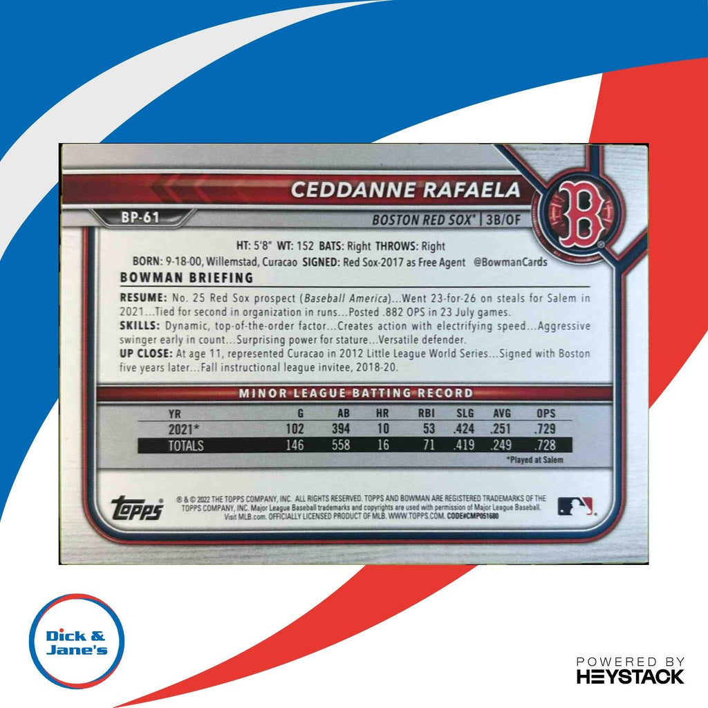 2022 Bowman Ceddanne Rafaela Prospects Purple 134/250 #BP-61 Boston Red Sox Listed With Mascot.