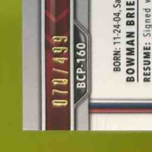 : Get your hands on the highly sought-after 2022 Bowman Chrome Anthony Gutierrez Refractor card featuring the top prospect from the Texas Rangers! Limited edition numbered 70/499, this MLB collectible is a must-have for any baseball card enthusiast looking to add to their collection. Listed With Mascot.