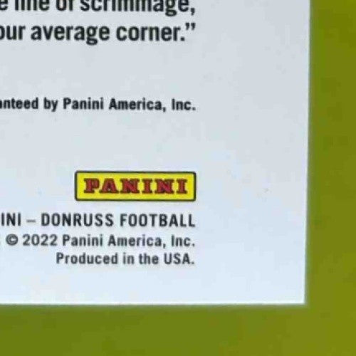 This 2022 Donruss Ahmad Sauce Gardner The Rookies Auto card is a must-have for New York Jets fans and collectors. Limited to just 199 copies, this rookie card features an authentic autograph from the rising star cornerback. A rare find for any NFL trading card enthusiast. Listed With Mascot.
