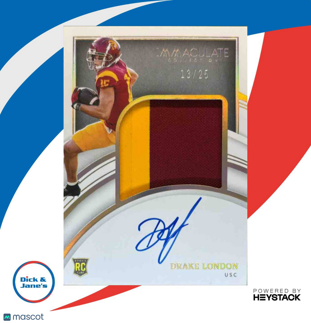 2022 Immaculate Collection Collegiate Drake London Gold /25 MEM Auto RC Trojans Listed With Mascot.