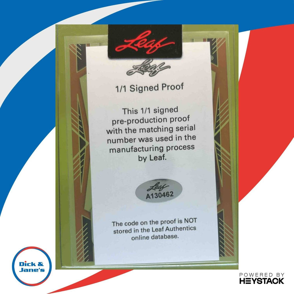 The 2022 Leaf Flash Drake London 1/1 Auto Pre Production Proof is a rare NCAAF trading card featuring an exclusive RC auto signature. This one-of-a-kind card is a must-have for collectors, showcasing London in a unique and limited edition format. Don't miss your chance to own this special piece of sports memorabilia! Listed With Mascot.