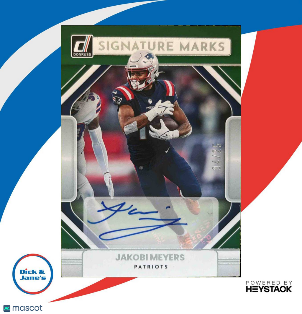 2022 Panini Donruss Jakobi Meyers Signature Marks Green /25 New England Patriots Listed With Mascot.