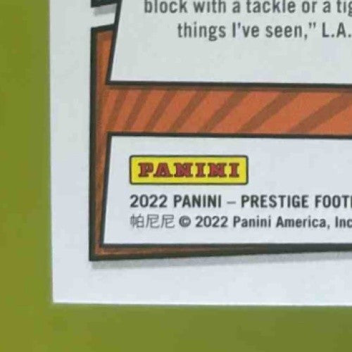 This 2022 Panini Prestige trading card features Cooper Kupp of the Los Angeles Rams. The card is a limited edition Xtra Points Blue parallel, numbered out of 299. A must-have for any NFL fan and collectors alike. Don't miss your chance to own a piece of sports history! Listed With Mascot.