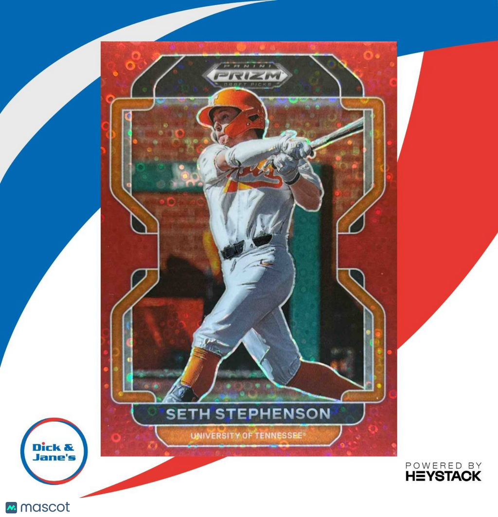 The 2022 Panini Prizm Draft Picks Seth Stephenson Red Donut Circles /99 Volunters card is a rare NCAAB NCAAF sports trading card featuring the standout player. With a limited edition of only 99 cards produced, this collectible item is highly sought after by fans and card collectors alike. Don't miss your chance to own a piece of sports history with this exclusive card. Listed With Mascot.
