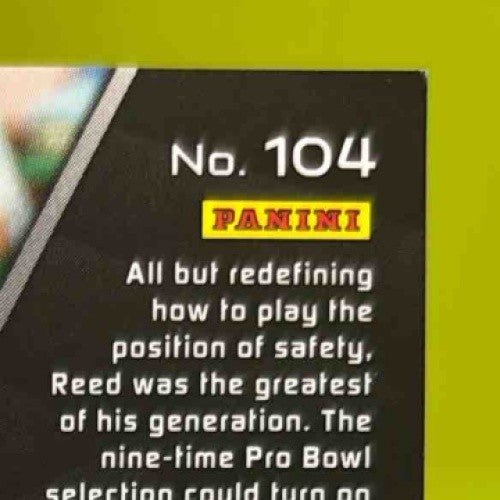 2022 Panini Spectra Ed Reed Neon Blue Die Cut 36/50 #104 Baltimore Ravens Listed With Mascot.