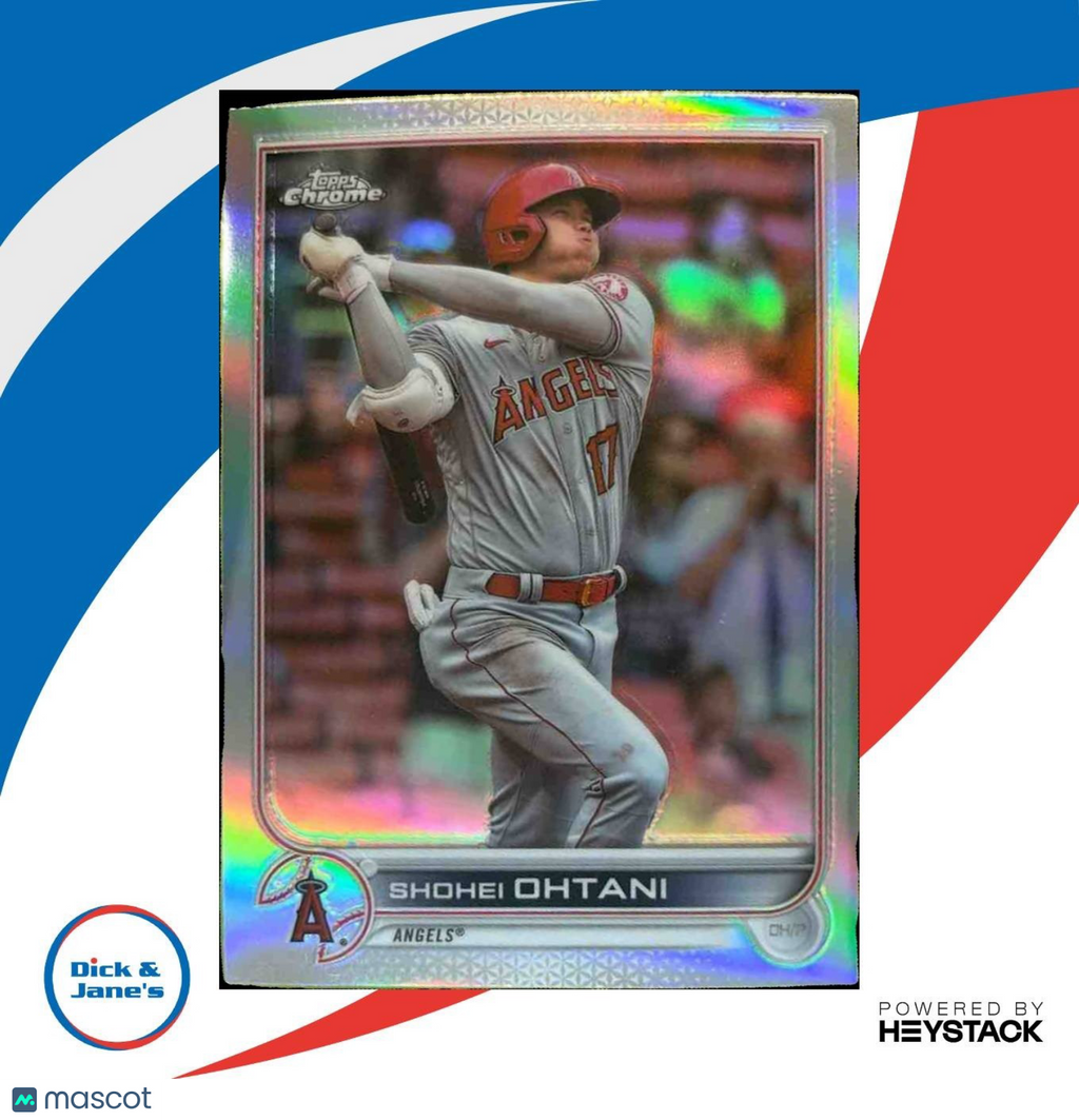 This 2022 Topps Chrome Sonic Shohei Ohtani Refractor #1 Los Angeles Angels trading card is a must-have for any MLB fan. Featuring the dynamic player in action, this chrome refractor card is a rare and collectible piece that is sure to stand out in any collection. Don't miss your chance to own a piece of baseball history! Listed With Mascot.
