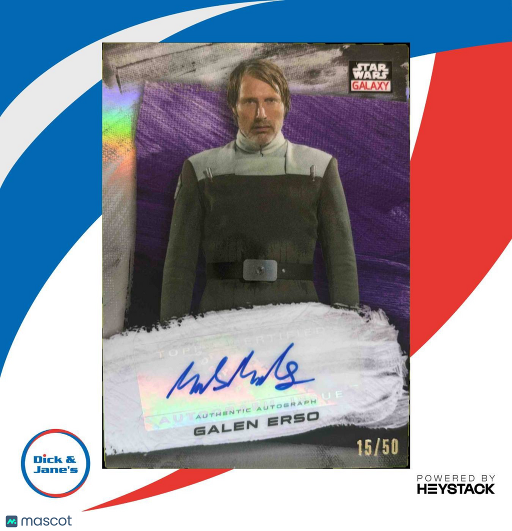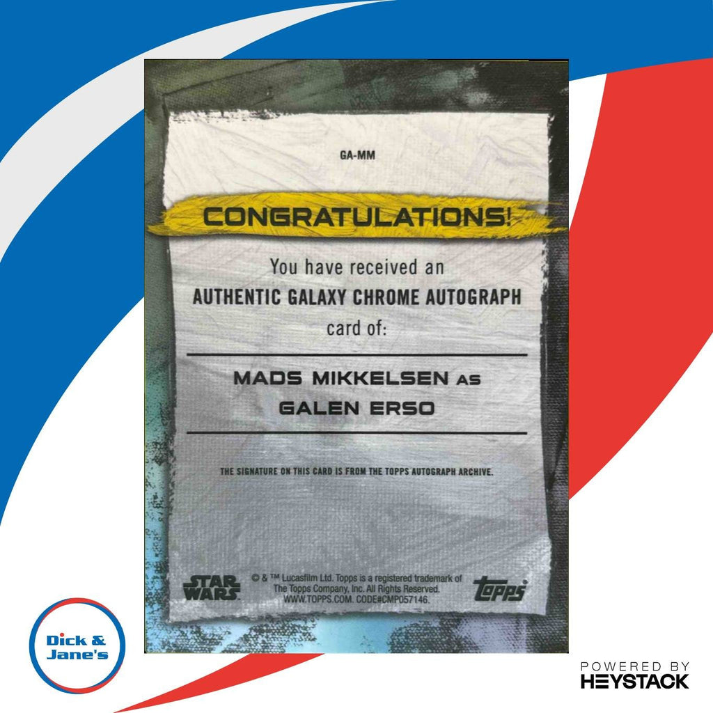 2022 Topps Chrome Star Wars Galaxy Mads Mikkelsen Auto Purple 15/50 Galen Erso Listed With Mascot.
