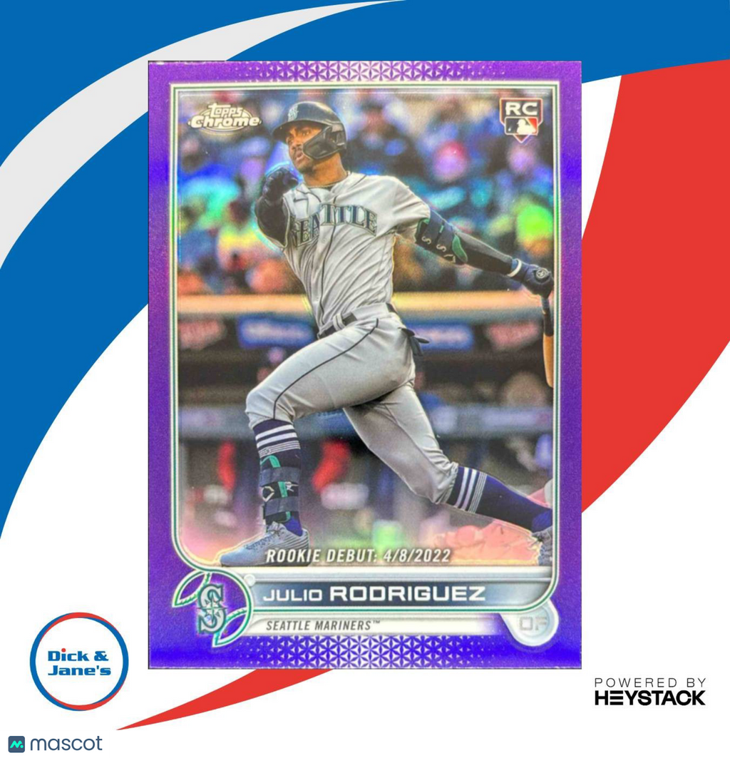 2022 Topps Chrome Update Julio Rodriguez Purple Refractor #USC165 Mariners Listed With Mascot.