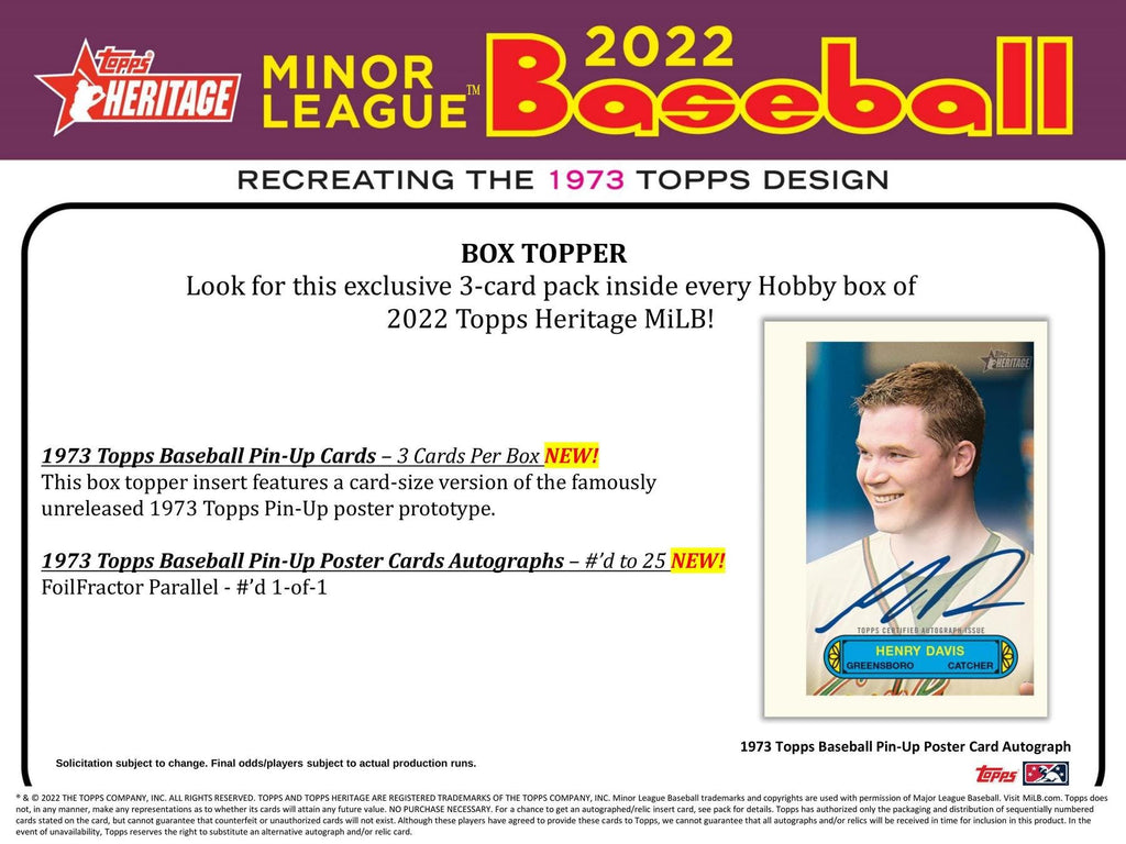 Look for this exclusive 3-card pack inside every Hobby box of 2022 Topps Heritage MiLB
