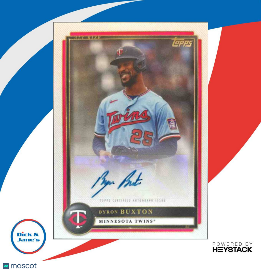 2022 Topps x Aaron Judge Byron Buxton Auto #76-A Minnesota Twins Listed With Mascot.