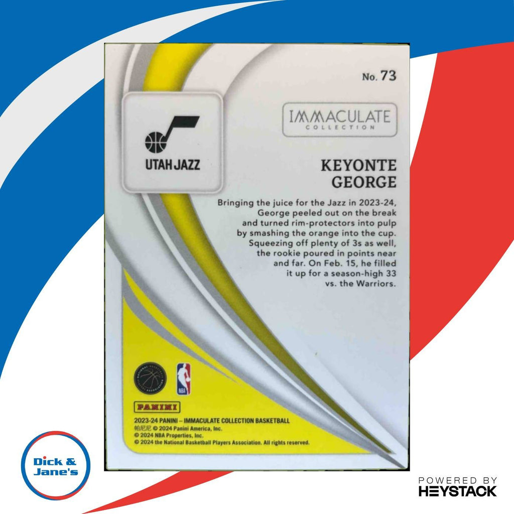 2023-24 Panini Immaculate Keyonte George 67/99 #73 RC Utah Jazz Listed With Mascot.