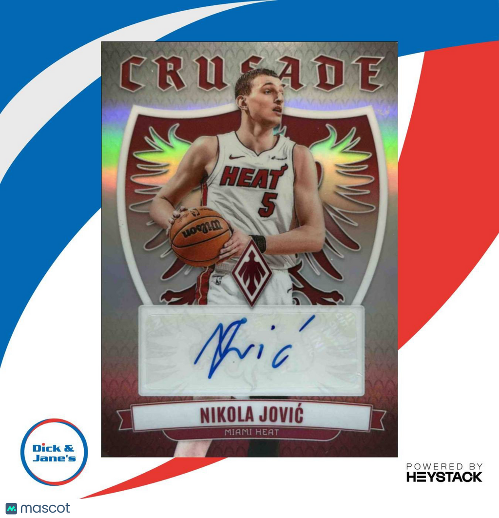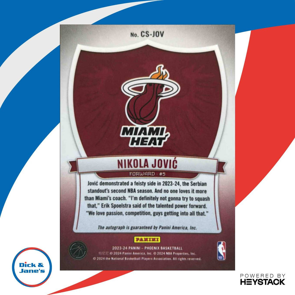 2023-24 Panini Phoenix Nikola Jovic Crusade Signatures #CS-JOV Auto Miami Heat Listed With Mascot.