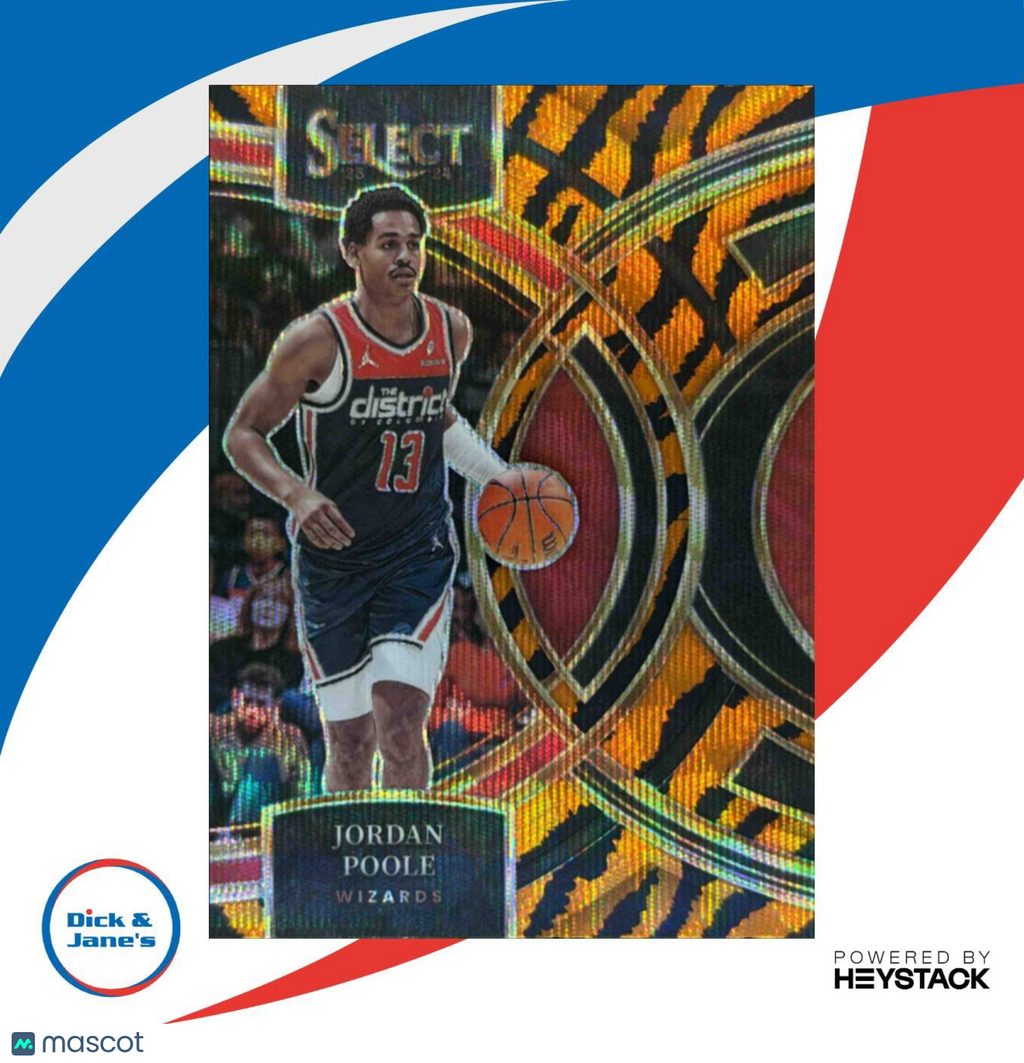 2023-24 Panini Select Jordan Poole Tiger Prizms #183 Premier Washington Wizards Listed With Mascot.
