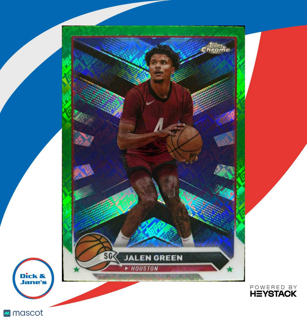2023-24 Topps Chrome Jalen Green Refractor #37 Houston Rockets Listed With Mascot.