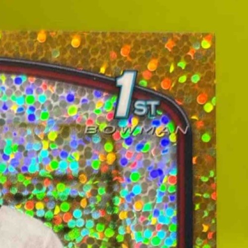 This rare 2023 Bowman Chrome Luis Guanipa Auto Gold Speckle /50 1st Prospect Braves trading card is a must-have for any baseball card collector. With Guanipa being a top prospect for the Braves, this card is a valuable addition to any collection. Grab it now before it's gone! Listed With Mascot.