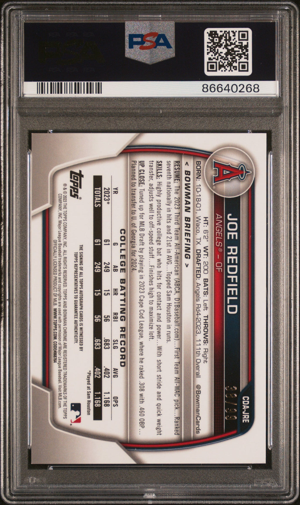 You are purchasing the following: 2023 Bowman Draft Chrome Prospect Autograph Joe Redfield Chrome Prspct Au Green Lava #CDAJRE PSA 8 . You will receive the exact item in the photographs. Note: Please do not connact us and asking the following: 1. What is the lowest you would take? Just make an offer. If the offer is automatically declined, you have your answer. 2. What the best you can do? See above. Not repling to an email is a reply. 3. Any room on this? See above. Not repling to an offer is a reply. 4. We ONLY do one counter offer, so please make your best offer the first time! Note: If the price off, in your option, please send your resaoning and an offer. We will review it. Note: We manage nearly 10 millon cards regularly and will adjust prices as errors are noticed or pointed out! Listed With Mascot.