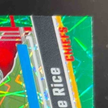 For sale: Rare 2023 Donruss Optic Rashee Rice Green Velocity Prizm #257 RC Rated Rookie card. Featuring the up-and-coming NFL star from the Chiefs. Don't miss this opportunity to add this highly sought-after card to your collection. Get it now! Listed With Mascot.