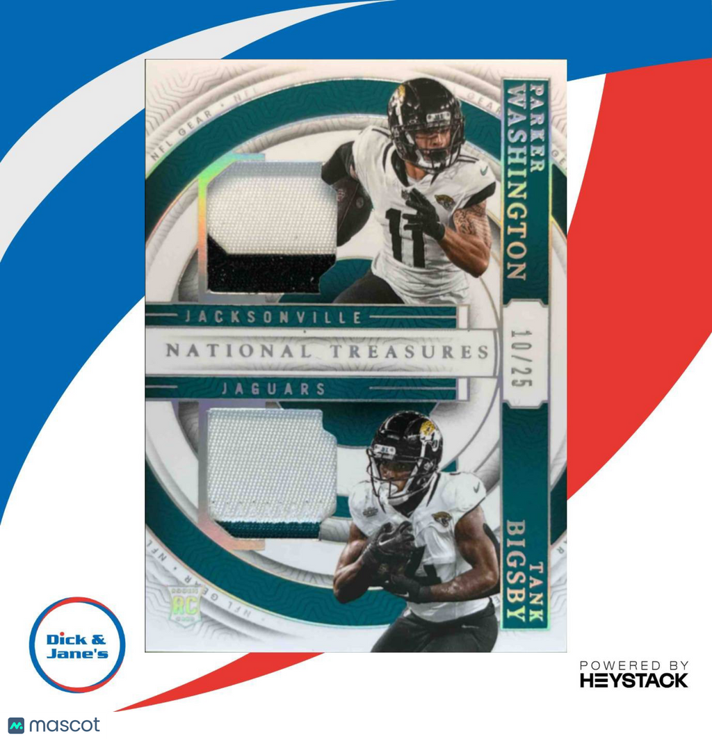 2023 National Treasures Parker Washington Bigsby Rookie NFL Gear Combo Holo /25 Listed With Mascot.