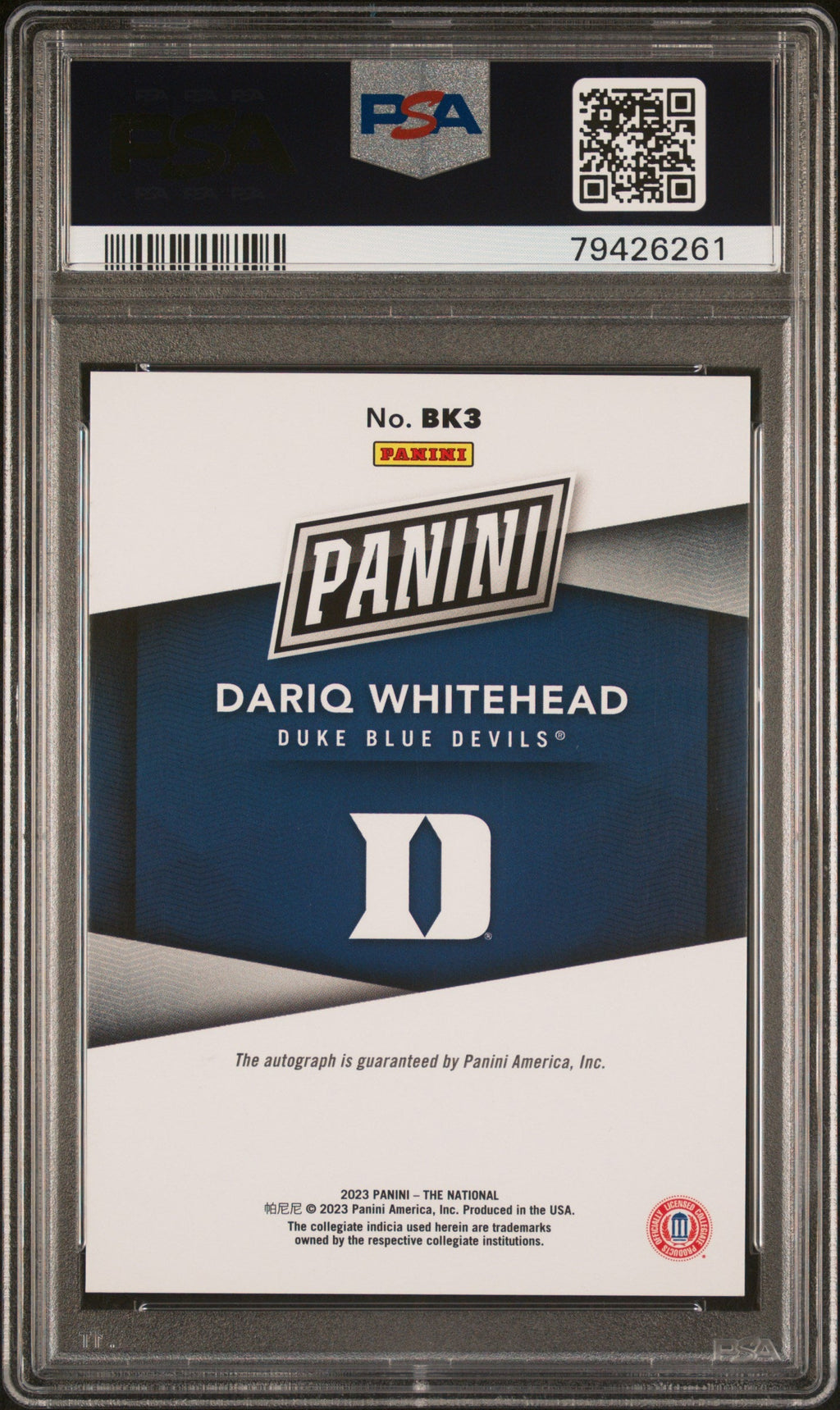 You are purchasing the following: National Sports Collectors Convention Silver Packs Basketball Dariq Whitehead Autograph 25/25 #BK3 PSA 9 Duke Blue Devils. You will receive the exact item in the photographs. Note: Please do not connact us and asking the following: 1. What is the lowest you would take? Just make an offer. If the offer is automatically declined, you have your answer. 2. What the best you can do? See above. Not repling to an email is a reply. 3. Any room on this? See above. Not repling to an offer is a reply. 4. We ONLY do one counter offer, so please make your best offer the first time! Note: If the price off, in your option, please send your resaoning and an offer. We will review it. Note: We manage nearly 10 millon cards regularly and will adjust prices as errors are noticed or pointed out! Listed With Mascot.