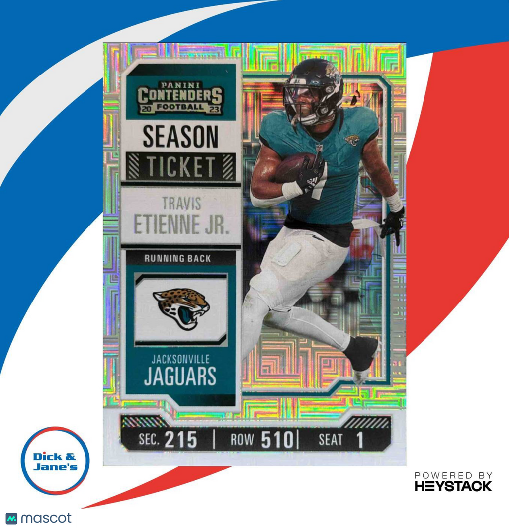 2023 Panini Contenders Travis Etienne Jr. #47 Season Ticket Jacksonville Jaguars Listed With Mascot.