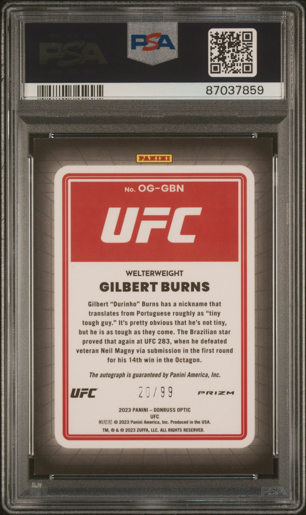 You are purchasing the following: 2023 Panini Donruss Optic UFC Opti-Graphs Gilbert Burns Blue #OGGBN PSA 9 . You will receive the exact item in the photographs. Note: Please do not connact us and asking the following: 1. What is the lowest you would take? Just make an offer. If the offer is automatically declined, you have your answer. 2. What the best you can do? See above. Not repling to an email is a reply. 3. Any room on this? See above. Not repling to an offer is a reply. 4. We ONLY do one counter offer, so please make your best offer the first time! Note: If the price off, in your option, please send your resaoning and an offer. We will review it. Note: We manage nearly 10 millon cards regularly and will adjust prices as errors are noticed or pointed out! Listed With Mascot.
