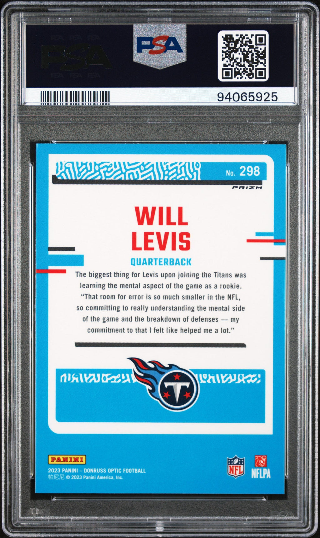 You are purchasing the following: 2023 Panini Donruss Optic Will Levis Purple Shock #298 PSA 10 . You will receive the exact item in the photographs. Note: Please do not connact us and asking the following: 1. What is the lowest you would take? Just make an offer. If the offer is automatically declined, you have your answer. 2. What the best you can do? See above. Not repling to an email is a reply. 3. Any room on this? See above. Not repling to an offer is a reply. 4. We ONLY do one counter offer, so please make your best offer the first time! Note: If the price off, in your option, please send your resaoning and an offer. We will review it. Note: We manage nearly 10 millon cards regularly and will adjust prices as errors are noticed or pointed out! Listed With Mascot.