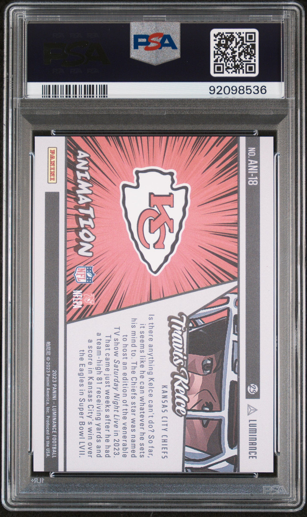 You are purchasing the following: 2023 Panini Luminance Animation Travis Kelce #ANI18 PSA 9 . You will receive the exact item in the photographs. Note: Please do not connact us and asking the following: 1. What is the lowest you would take? Just make an offer. If the offer is automatically declined, you have your answer. 2. What the best you can do? See above. Not repling to an email is a reply. 3. Any room on this? See above. Not repling to an offer is a reply. 4. We ONLY do one counter offer, so please make your best offer the first time! Note: If the price off, in your option, please send your resaoning and an offer. We will review it. Note: We manage nearly 10 millon cards regularly and will adjust prices as errors are noticed or pointed out! Listed With Mascot.