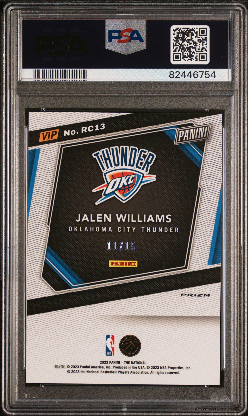 You are purchasing the following: 2023 Panini National Vip Gold Rookies Jalen Williams Red White Blue /15 #RC13 PSA 10 . You will receive the exact item in the photographs. Note: Please do not connact us and asking the following: 1. What is the lowest you would take? Just make an offer. If the offer is automatically declined, you have your answer. 2. What the best you can do? See above. Not repling to an email is a reply. 3. Any room on this? See above. Not repling to an offer is a reply. 4. We ONLY do one counter offer, so please make your best offer the first time! Note: If the price off, in your option, please send your resaoning and an offer. We will review it. Note: We manage nearly 10 millon cards regularly and will adjust prices as errors are noticed or pointed out! Listed With Mascot.