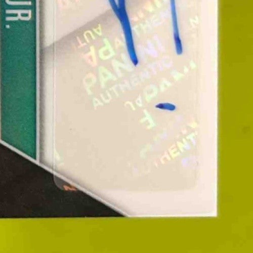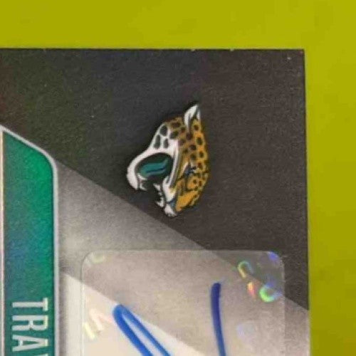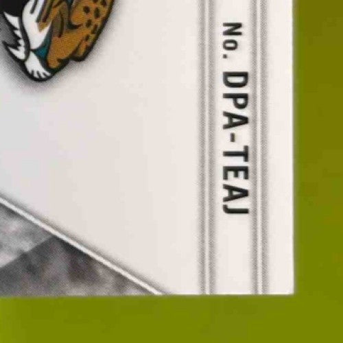 Own a piece of NFL history with this rare 2023 Panini Phoenix trading card featuring a dual patch autograph of star players Travis Etienne Jr. and Aaron Jones. Limited to just 10 copies, this black parallel card is a must-have for any football card collector. Don't miss out on adding this exquisite MEM Auto to your collection! Listed With Mascot.