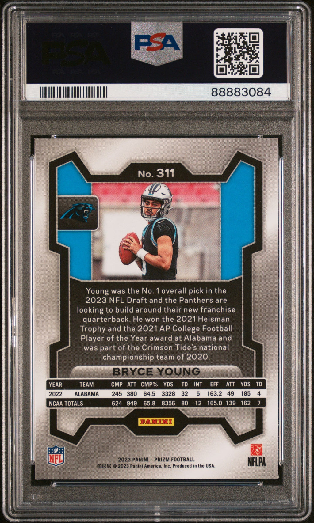 You are purchasing the following: 2023 Panini Prizm Bryce Young Rookie #311 PSA 8 Carolina Panthers. You will receive the exact item in the photographs. Note: Please do not connact us and asking the following: 1. What is the lowest you would take? Just make an offer. If the offer is automatically declined, you have your answer. 2. What the best you can do? See above. Not repling to an email is a reply. 3. Any room on this? See above. Not repling to an offer is a reply. 4. We ONLY do one counter offer, so please make your best offer the first time! Note: If the price off, in your option, please send your resaoning and an offer. We will review it. Note: We manage nearly 10 millon cards regularly and will adjust prices as errors are noticed or pointed out! Listed With Mascot.