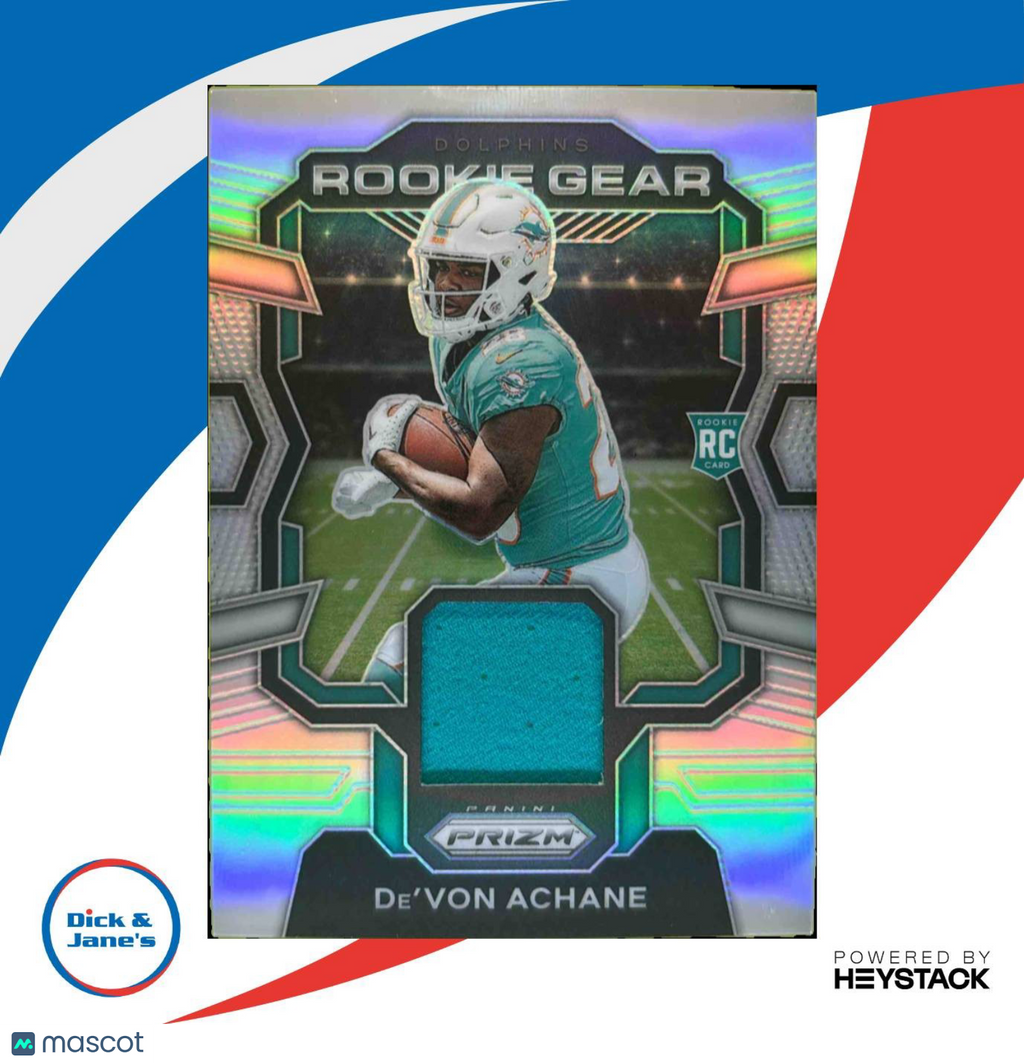 2023 Panini Prizm De'Von Achane Rookie Gear #RG-DA MEM RC Miami Dolphins Listed With Mascot.