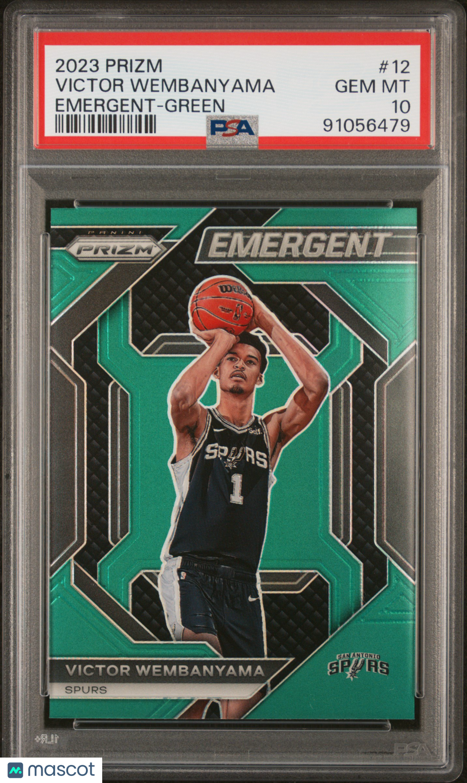 You are purchasing the following: 2023 Panini Prizm Emergent Victor Wembanyama Green Rookie #12 PSA 10 San Antonio Spurs. You will receive the exact item in the photographs. Note: Please do not connact us and asking the following: 1. What is the lowest you would take? Just make an offer. If the offer is automatically declined, you have your answer. 2. What the best you can do? See above. Not repling to an email is a reply. 3. Any room on this? See above. Not repling to an offer is a reply. 4. We ONLY do one counter offer, so please make your best offer the first time! Note: If the price off, in your option, please send your resaoning and an offer. We will review it. Note: We manage nearly 10 millon cards regularly and will adjust prices as errors are noticed or pointed out! Listed With Mascot.
