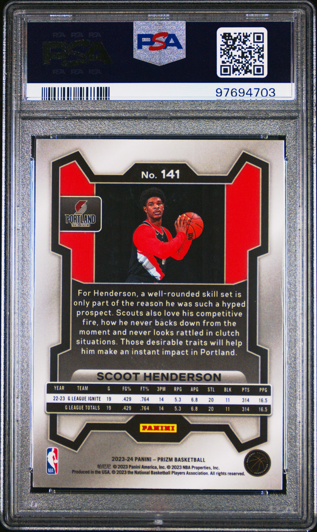 You are purchasing the following: 2023 Panini Prizm Scoot Henderson Rookie #141 PSA 10 Portland Trail Blazers. You will receive the exact item in the photographs. Note: Please do not connact us and asking the following: 1. What is the lowest you would take? Just make an offer. If the offer is automatically declined, you have your answer. 2. What the best you can do? See above. Not repling to an email is a reply. 3. Any room on this? See above. Not repling to an offer is a reply. 4. We ONLY do one counter offer, so please make your best offer the first time! Note: If the price off, in your option, please send your resaoning and an offer. We will review it. Note: We manage nearly 10 millon cards regularly and will adjust prices as errors are noticed or pointed out! Listed With Mascot.