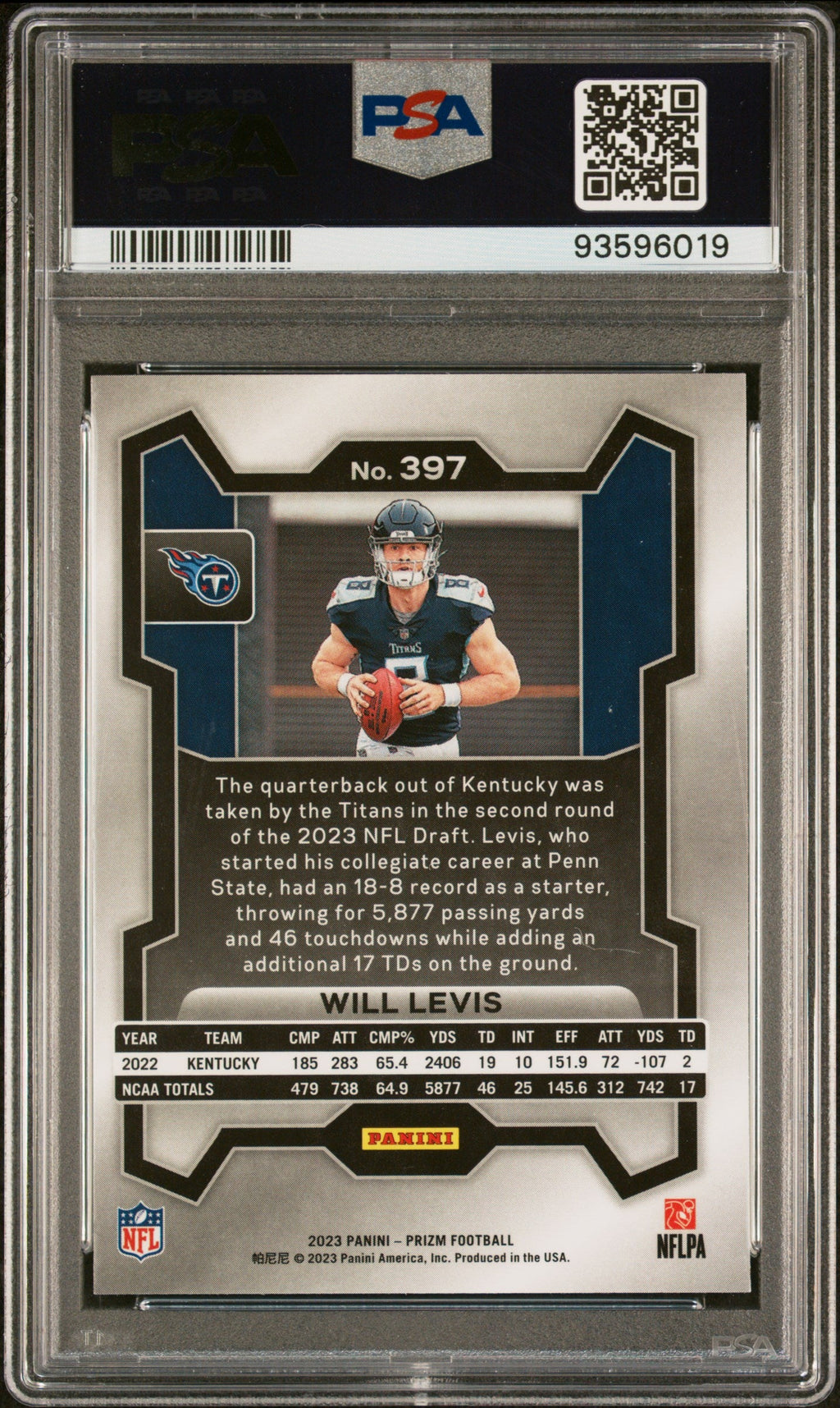 You are purchasing the following: 2023 Panini Prizm Will Levis #397 PSA 10 Tennessee Titans. You will receive the exact item in the photographs. Note: Please do not connact us and asking the following: 1. What is the lowest you would take? Just make an offer. If the offer is automatically declined, you have your answer. 2. What the best you can do? See above. Not repling to an email is a reply. 3. Any room on this? See above. Not repling to an offer is a reply. 4. We ONLY do one counter offer, so please make your best offer the first time! Note: If the price off, in your option, please send your resaoning and an offer. We will review it. Note: We manage nearly 10 millon cards regularly and will adjust prices as errors are noticed or pointed out! Listed With Mascot.