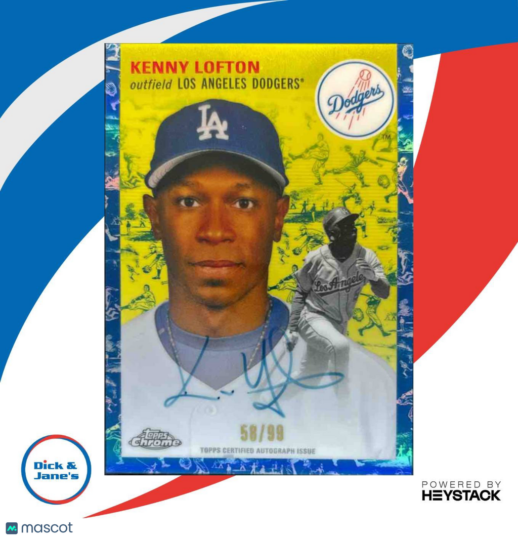 2023 Topps Chrome Platinum Anniversary Kenny Lofton Auto Blue Prism /99 Dodgers Listed With Mascot.