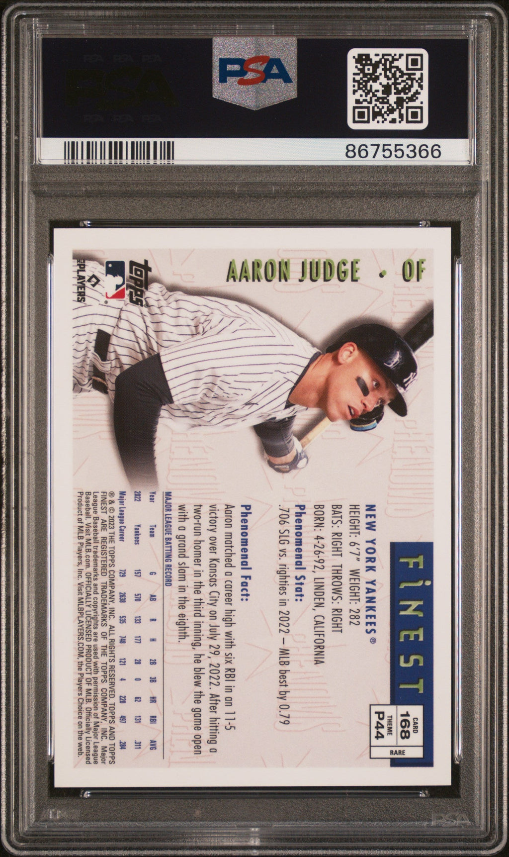 You are purchasing the following: 2023 Topps Finest Flashbacks Aaron Judge #168 PSA 9 . You will receive the exact item in the photographs. Note: Please do not connact us and asking the following: 1. What is the lowest you would take? Just make an offer. If the offer is automatically declined, you have your answer. 2. What the best you can do? See above. Not repling to an email is a reply. 3. Any room on this? See above. Not repling to an offer is a reply. 4. We ONLY do one counter offer, so please make your best offer the first time! Note: If the price off, in your option, please send your resaoning and an offer. We will review it. Note: We manage nearly 10 millon cards regularly and will adjust prices as errors are noticed or pointed out! Listed With Mascot.